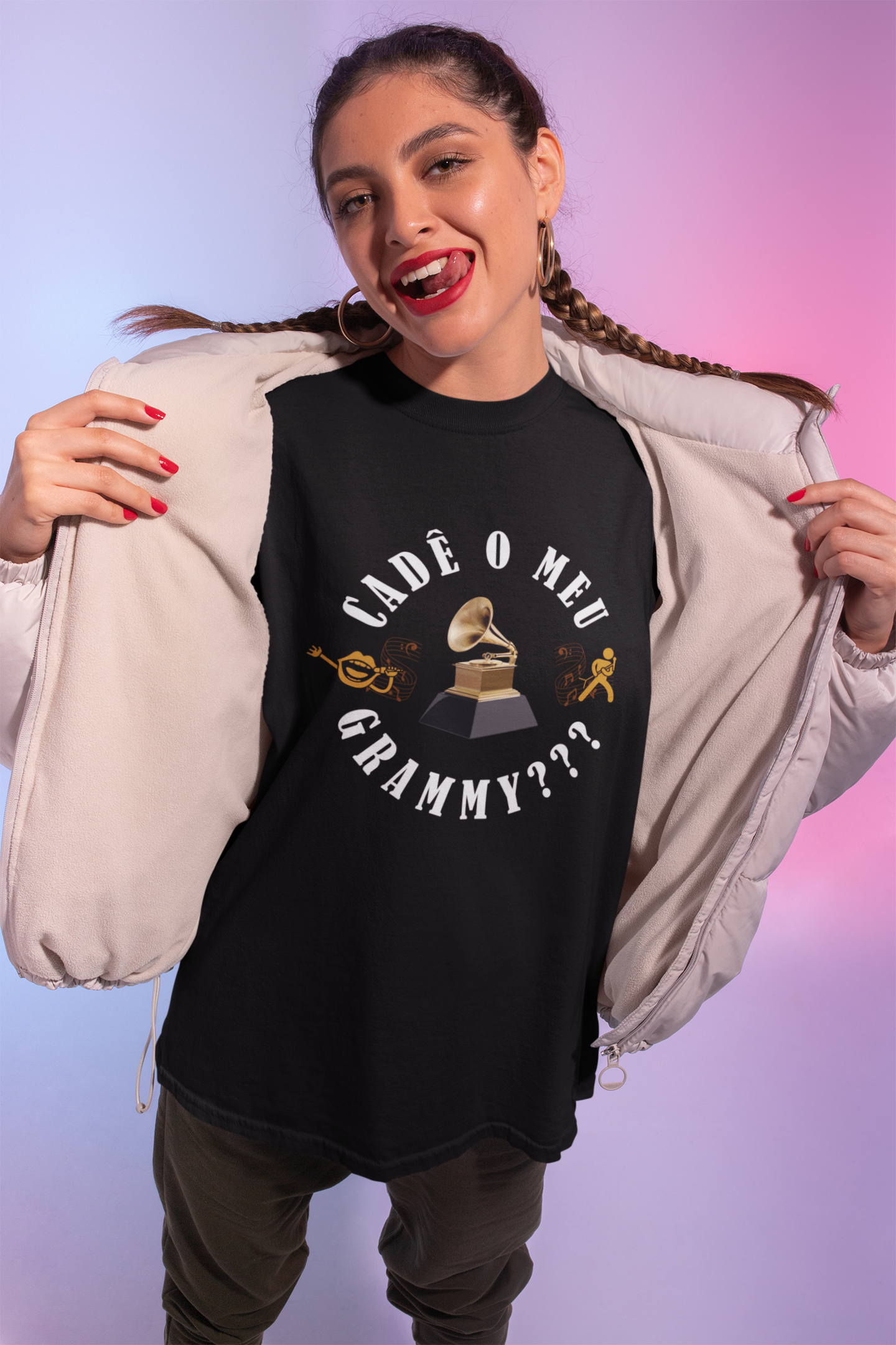 A estampa Cadê o meu Grammy??? é para quem se sente uma estrela no chuveiro e não aceita menos do que a estatueta dourada! Afinal, depois de uma performance dessas, o Grammy que se cuide!